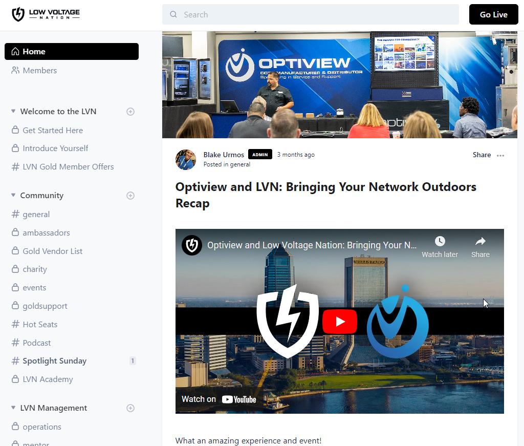 We operate the largest and most engaged Low Voltage Facebook Group. We allow vendors to post on Thursday and Premium members get featured posts.